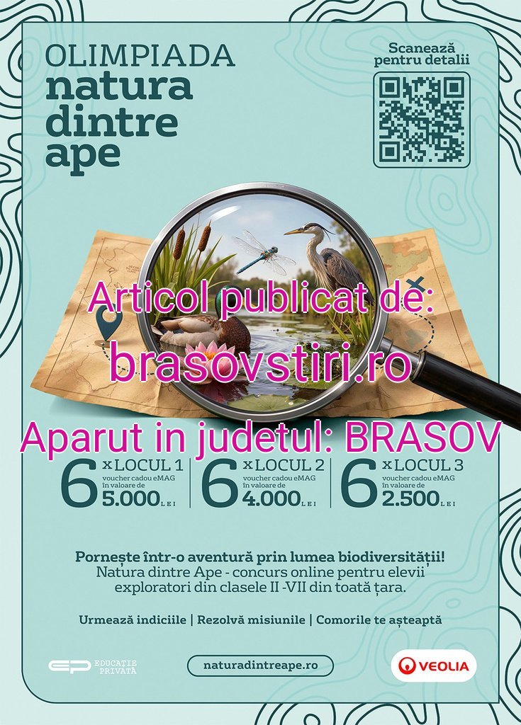Organizată de Veolia România,ediția din acest an a Olimpiadei „Natura dintre Ape” se desfășoară la nivel național, iar înscrierile sunt deschise până pe 20 mai 2026 . Competiția va avea loc online,pe 23 mai pentru elevii din ciclul primar și pe 24 mai pentru elevii din ciclul gimnazial ,iar câștigătorii vor fi premiați în cadrul unei festivități organizate pe 13 iunie 2026.