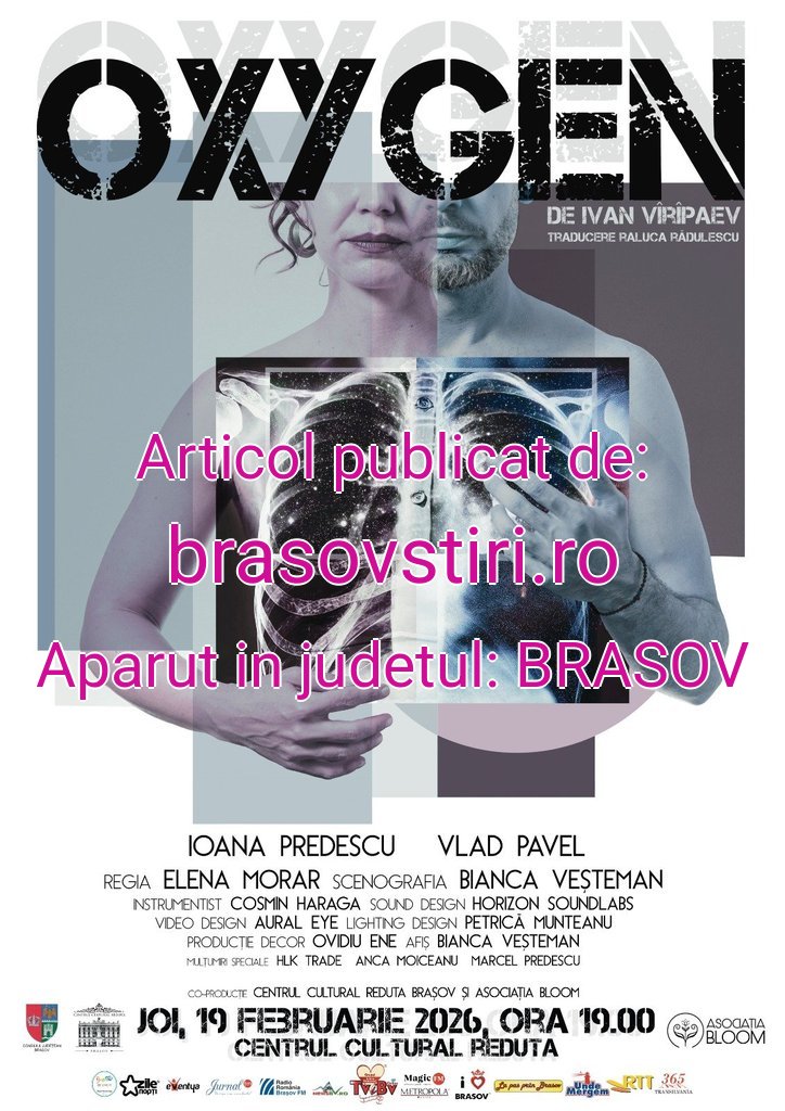 Centrul Cultural Reduta și Asociația Bloom dau startul anului teatral 2026 cu prima reprezentație a spectacolului-concert „OXYGEN”, după un text semnat de Ivan Vîrîpaev. Evenimentul va avea loc joi, 19 februarie 2026, de la ora 19:00, pe scena Centrului Cultural Reduta din Brașov și este recomandat publicului 16+.